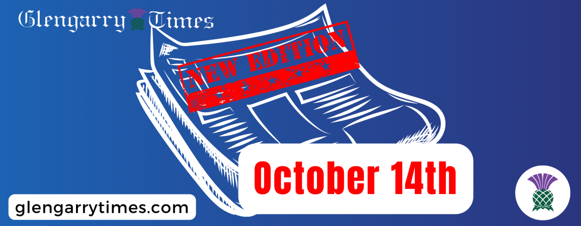 At The Glengarry Times, we want to thank our loyal subscribers and readers for supporting local journalism. As a reminder, we publish two issues each month. While this may sometimes look like a bi-weekly schedule, our October issues will be released on October 14th and October 28th. Your community newspaper plays an important role in preserving and sharing Glengarry’s living history....